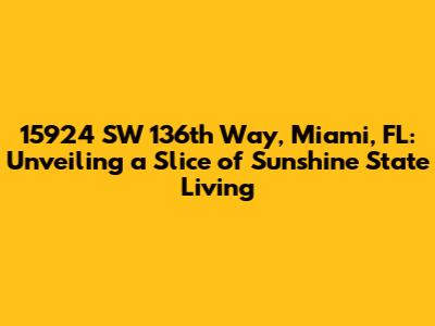 Alright, folks, let's dive into the details of 15924 SW 136th Way, Miami, FL. This isn't just an address; it's a potential gateway to experiencing the vibrant Miami lifestyle. When you're looking at properties, especially in a place as dynamic as Miami, understanding the nuances of the location is super important. Getting to know everything, from the neighborhood vibes to the nearby amenities, can make all the difference in how much you'll love living there. So, whether you're a seasoned investor or a first-time homebuyer, let’s get into what makes this address tick.