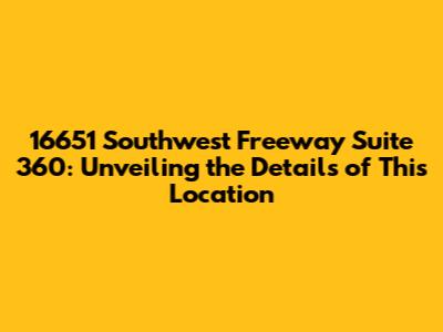 Hey guys! Today, we're diving deep into everything you need to know about 16651 Southwest Freeway, Suite 360. This location, nestled along the bustling Southwest Freeway, holds significance for various businesses and services. Whether you're planning a visit, sending mail, or just curious about what's inside, understanding the nuances of this address is essential. Think of this as your ultimate guide to navigating and appreciating the ins and outs of Suite 360 at 16651 Southwest Freeway. We will explore the building's features, nearby landmarks, and how it serves the community, to provide a comprehensive picture. This prime location offers easy access to major transportation routes and is surrounded by a vibrant mix of commercial and residential areas, making it a key spot for businesses and individuals alike. So let's start this journey and unpack all the essential details about 16651 Southwest Freeway, Suite 360.