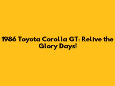 1986 Toyota Corolla GT: A Classic You Can Still Own!