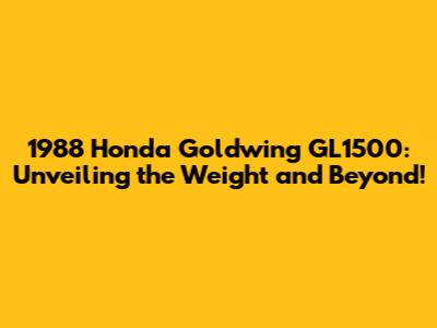 1988 Honda Goldwing GL1500: Weight, Specs & More!