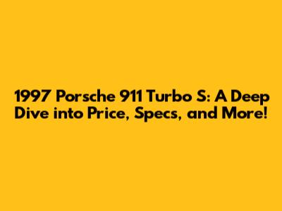 Hey guys, are you ready to talk about one seriously iconic car? We're diving deep into the 1997 Porsche 911 Turbo S. This isn't just any Porsche; this is a legend, a beast, a dream car for many of us. If you're wondering about the price, what makes it tick, and why it's so darn special, you're in the right place. Let's get into the nitty-gritty of this automotive masterpiece!