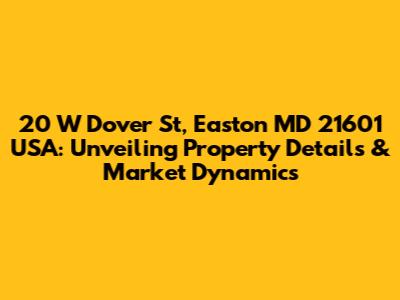 Hey there, real estate enthusiasts! Let's dive deep into the fascinating world of property, specifically focusing on 20 W Dover St, Easton, MD 21601, USA. This isn't just about a physical address; it's about uncovering a wealth of information. This guide will be your go-to resource, whether you're a seasoned investor, a first-time homebuyer, or simply curious about the real estate landscape in Easton, Maryland. We'll explore everything from property details and sales history to comprehensive market analysis, giving you the insights you need to make informed decisions. So, grab a coffee, get comfy, and let's unravel the story behind this address!