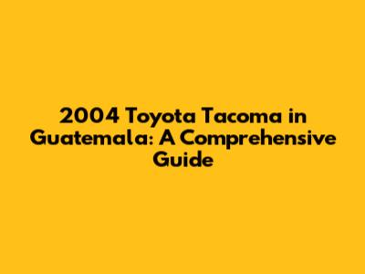 2004 Toyota Tacoma In Guatemala: A Comprehensive Guide