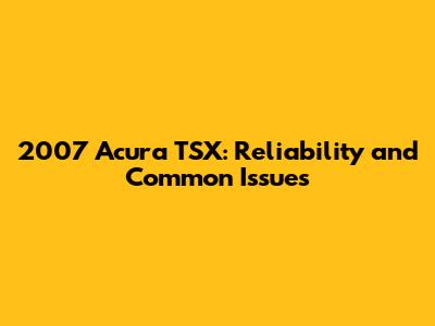 2007 Acura TSX: Reliability And Common Issues
