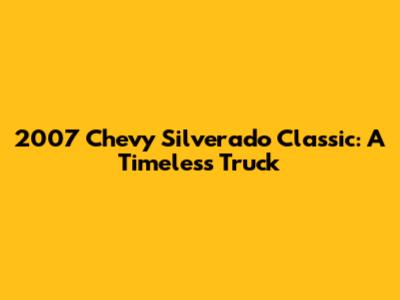 2007 Chevy Silverado Classic: A Timeless Truck