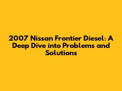 2007 Nissan Frontier Diesel: Problems & Solutions