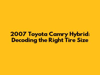 2007 Toyota Camry Hybrid: Tire Size Guide