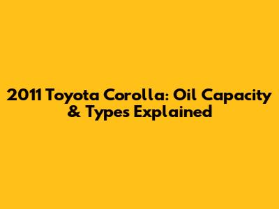 2011 Toyota Corolla: Oil Capacity & Types Explained