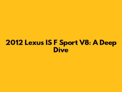 Hey guys! Let's talk about the 2012 Lexus IS F Sport V8. This car is a beast and a true testament to Lexus's commitment to performance and luxury. If you're considering getting one or are just curious, you're in the right place. We'll cover everything from its impressive engine to its stylish interior and what makes it a standout choice in the sports sedan market. I'll break it down so that it's easy to understand. So, buckle up!