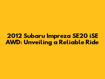 2012 Subaru Impreza SE20 ISE AWD: Your Go-To Guide