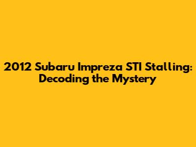 2012 Subaru Impreza STI Stalling: Causes & Solutions