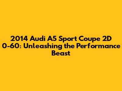 Hey car enthusiasts! Ever wondered about the 2014 Audi A5 Sport Coupe 2D 0-60 acceleration? Well, buckle up, because we're diving deep into the performance specs of this stylish ride. This isn't just about numbers; it's about understanding what makes the A5 Sport Coupe a thrilling experience on the road. We'll explore its engine options, the technology that makes it tick, and what all this means for your driving pleasure. Let's get started, shall we?