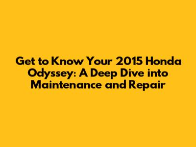 Get to Know Your 2015 Honda Odyssey: A Deep Dive into Maintenance and Repair
