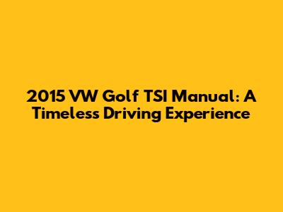 Hey guys! Let's dive into the 2015 Volkswagen Golf TSI with a manual transmission. This car isn't just a mode of transport; it's a driving experience that blends practicality with a dash of fun. If you're looking for a car that offers a bit of everything, stick around as we explore what makes this Golf TSI so special.