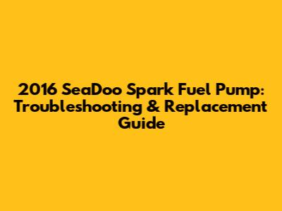 2016 SeaDoo Spark Fuel Pump: Troubleshooting & Replacement