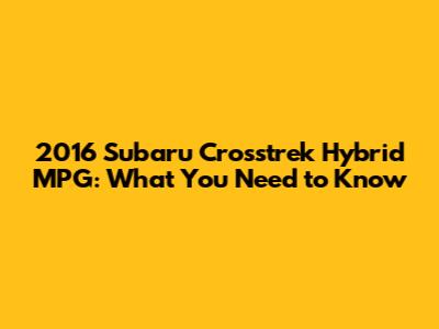 2016 Subaru Crosstrek Hybrid MPG: What You Need To Know