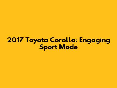 Hey guys, ever wondered what that little button does in your 2017 Toyota Corolla? You know, the one that says 'SPORT'? Well, today we're diving deep into the world of Sport Mode on your Corolla. It’s not just a fancy label; it’s designed to give your trusty sedan a bit more pep in its step when you want it. We'll explore what it actually does, how to activate it, and whether it’s worth using on your daily drives.