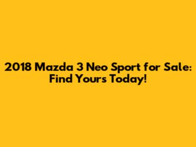 Finding a 2018 Mazda 3 Neo Sport for sale can be an exciting journey. With its blend of style, performance, and technology, this car offers a compelling package for a wide range of drivers. By doing your research, inspecting the car thoroughly, and negotiating the price wisely, you can drive away with a great deal on a fantastic car. Happy hunting, and enjoy the ride!