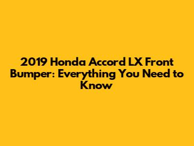 2019 Honda Accord LX Front Bumper: Everything You Need To Know