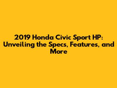 Hey car enthusiasts! Are you guys ready to dive deep into the world of the 2019 Honda Civic Sport HP? This article is your ultimate guide, covering everything from its engine specs and performance to its sleek design and user-friendly features. So, buckle up, because we're about to embark on a journey that explores what makes this Civic a popular choice in the compact car segment. We'll be taking a close look at what makes the 2019 Honda Civic Sport HP stand out. We'll explore its powerful engine, stylish design, and advanced features. So, whether you're a potential buyer or just a car aficionado, get ready to discover all the ins and outs of this fantastic vehicle.