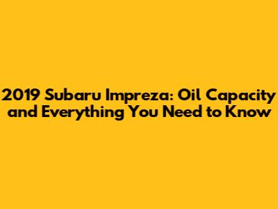 2019 Subaru Impreza: Oil Capacity And Everything You Need To Know