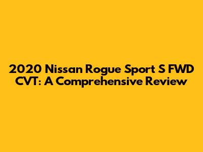 Hey guys! Today, we’re diving deep into the 2020 Nissan Rogue Sport S FWD CVT. This compact SUV has been making waves, and we're here to give you the lowdown on everything you need to know. From its performance and fuel efficiency to its interior features and safety tech, we’ve got you covered. Whether you’re a potential buyer or just curious, let’s jump right in and explore what makes the 2020 Nissan Rogue Sport S tick.
