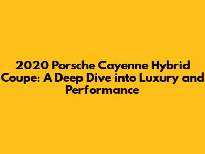 Hey car enthusiasts! Ever wondered about a car that blends luxury, raw power, and eco-friendliness? Well, look no further than the 2020 Porsche Cayenne Hybrid Coupe! This beauty takes the already impressive Cayenne and cranks it up a notch with its sleek coupe design and a plug-in hybrid powertrain. In this in-depth guide, we're going to break down everything you need to know about this amazing car. We'll explore its design, performance, technology, and what makes it a standout choice in the luxury SUV market. Get ready for a thrilling ride, guys!