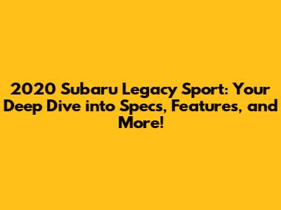Hey car enthusiasts! Are you guys curious about the 2020 Subaru Legacy Sport? You're in luck! We're diving deep into everything you need to know about this sporty sedan. From the nitty-gritty specs to the cool features that make it stand out, we've got you covered. So, buckle up, and let's explore what the 2020 Legacy Sport has to offer! If you're on the hunt for a reliable, feature-packed sedan with a touch of sporty flair, the 2020 Subaru Legacy Sport definitely deserves a closer look. It's got a lot to offer, from its impressive safety features to its comfortable interior and capable performance. This guide will be your ultimate resource, so you can make a super informed decision. Subaru has always been known for its commitment to safety and reliability, and the 2020 Legacy Sport is no exception. This car is designed to keep you and your passengers protected on the road. The Legacy Sport is packed with advanced safety technologies that work together to prevent accidents and keep you safe if one occurs. This is more than just a car; it's a statement. A statement about your lifestyle, your values, and your commitment to driving with confidence. It is a harmonious blend of style, performance, and practicality. So, whether you're commuting to work, running errands, or embarking on a road trip, the 2020 Subaru Legacy Sport is ready to elevate your driving experience. The goal is simple, to provide an easy-to-read, comprehensive overview of what makes this car a compelling choice for drivers seeking a blend of performance, style, and safety. So, let's get started and explore the world of the 2020 Subaru Legacy Sport together!