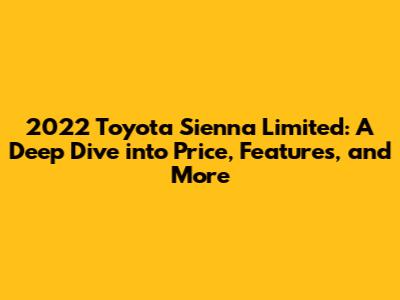 Hey there, car enthusiasts! Today, we're diving deep into the 2022 Toyota Sienna Limited, a minivan that's got everyone talking. If you're in the market for a family-friendly vehicle that doesn't skimp on luxury and features, the Sienna Limited should be on your radar. We'll be breaking down the price, the features, and everything else you need to know to make an informed decision. Buckle up, guys, because this is going to be a fun ride!