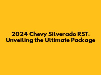 Hey truck enthusiasts! Ready to dive into the world of the 2024 Chevy Silverado RST package? This isn't just any trim; it's a carefully crafted blend of style, performance, and technology designed to turn heads and conquer any terrain. We're going to break down everything from its key features to what makes it stand out in a crowded market. So, buckle up, and let's explore the ins and outs of the Silverado RST! This article is your ultimate guide, covering everything from the engine options to the interior comforts and technology that make the RST a top contender for anyone seeking a versatile and capable pickup truck. The RST package elevates the Silverado from a workhorse to a stylish and functional vehicle, perfect for both everyday commutes and weekend adventures. Let's get started and uncover all the details that make the 2024 Chevy Silverado RST package a compelling choice for truck buyers. We'll examine the different configurations, including the engine choices, the available features, and how it compares to other trims in the Silverado lineup. You'll also find insights into the driving experience, the technology that enhances the ride, and the overall value proposition of the RST package. Are you curious about the specific upgrades that come with the RST? We'll provide a detailed look at the enhancements, from the exterior design elements to the interior amenities. Whether you're a long-time Silverado fan or considering your first pickup truck, this article will equip you with the knowledge you need to make an informed decision about the 2024 Chevy Silverado RST. Get ready to discover why the RST package continues to be a favorite among truck enthusiasts. The RST package represents more than just aesthetics; it's about providing a complete driving experience, blending capability with a touch of luxury and modern technology. So, let’s get into the specifics, shall we?