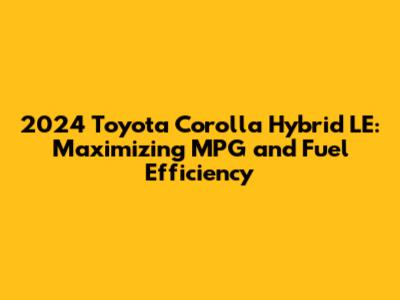 By following these tips, you can significantly improve your 2024 Toyota Corolla Hybrid LE's MPG and save money on fuel. Remember, even small changes in your driving habits can make a big difference over time.