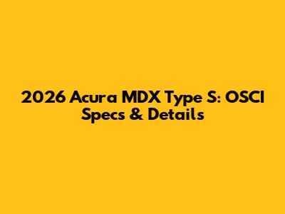2026 Acura MDX Type S: OSCI Specs & Details