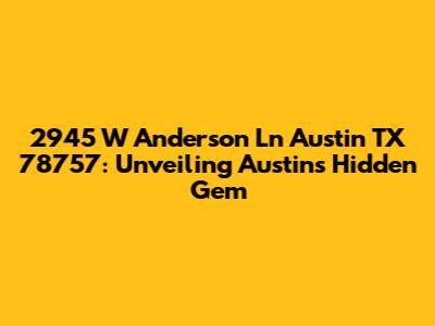 Hey there, real estate enthusiasts and Austin aficionados! Ready to dive into a detailed exploration of a truly special address? Let's zoom in on 2945 W Anderson Ln Austin TX 78757. This isn't just a random set of numbers and letters; it's a gateway to understanding a slice of Austin's unique charm. We're going to break down everything you need to know about this location, from the neighborhood vibe to the types of properties you might find there, and even some local hotspots you absolutely shouldn't miss. Think of this as your personal tour guide to one of Austin's most desirable areas. So, buckle up, grab your virtual maps, and let's get started!