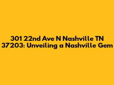 Hey guys! Ever find yourself curious about a specific address? Today, we're diving deep into 301 22nd Ave N, Nashville, TN 37203. This isn't just a random string of numbers and letters; it's a gateway to understanding a little slice of Nashville life. Whether you're a prospective resident, a curious neighbor, or just someone fascinated by the Music City, stick around as we uncover everything this address has to offer. Let's get started and explore the ins and outs of this Nashville location, giving you a comprehensive view of what makes it tick.