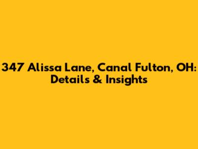 Hey guys! Today, we're diving deep into everything you need to know about 347 Alissa Lane, Canal Fulton, OH. Whether you're a potential buyer, a curious neighbor, or just doing some real estate research, this article is your go-to resource. We'll cover location specifics, property features, neighborhood vibes, and why Canal Fulton might just be the perfect place for you. So, let’s get started and explore what makes this address so special!