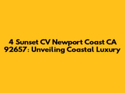 Hey guys! Let's dive into the stunning world of 4 Sunset CV, Newport Coast, CA 92657. This isn't just a location; it's a lifestyle, a dream, and a slice of paradise all rolled into one. If you're curious about what makes this address so special, you're in the right place. We're going to explore everything from the breathtaking views to the luxurious amenities and the exclusive community that surrounds this coveted address. Get ready to be amazed!