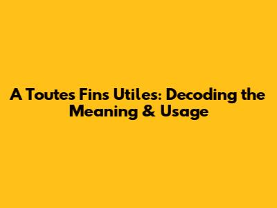 A Toutes Fins Utiles: Meaning & Usage Explained
