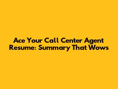 Ace Your Call Center Agent Resume: Summary That Wows