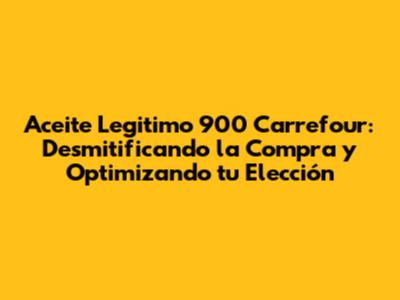 Aceite Legitimo 900 Carrefour: Guía Completa Para Comprar Informado