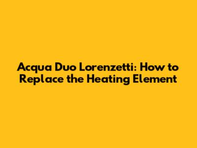 Acqua Duo Lorenzetti: How To Replace The Heating Element