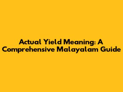 Actual Yield Meaning: A Comprehensive Malayalam Guide