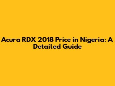 Factors Influencing the Price of Acura RDX 2018 in Nigeria