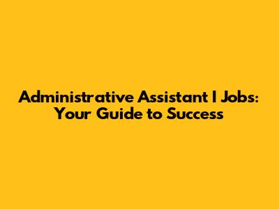 Administrative Assistant I Jobs: Your Guide To Success