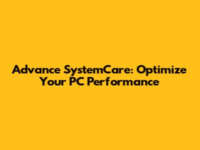Advance SystemCare: Optimize Your PC Performance