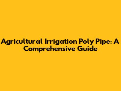 Agricultural Irrigation Poly Pipe: A Comprehensive Guide