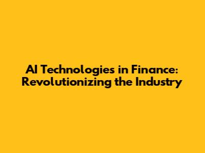 AI Technologies In Finance: Revolutionizing The Industry