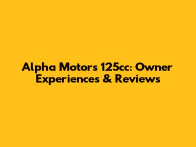 Alpha Motors 125cc: Owner Experiences & Reviews