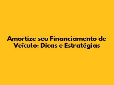 Amortize Seu Financiamento De Veículo: Dicas E Estratégias