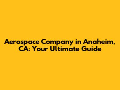 Anaheim, CA: Your Aerospace Company Guide