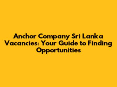 Anchor Company Sri Lanka: Find Job Vacancies